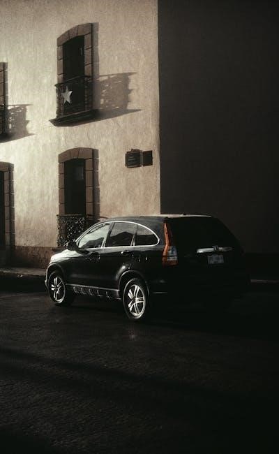 The 2017 CR-V’s brake maintenance, detailed in the official PDF, involves regular inspections of pads, rotors, and brake lines. At 15,000 miles, inspect front and rear brakes for wear. Fluid checks are crucial every 30,000 miles, ensuring optimal braking performance and preventing corrosion within the system.